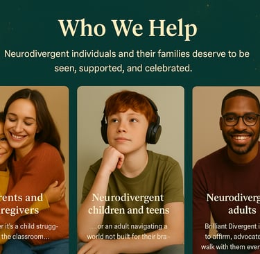 Brilliant Divergent exists to illuminate the brilliance within neurodivergent children and adults—not by fixing what was never broken, but by dismantling the systems that refuse to see them.